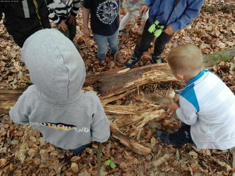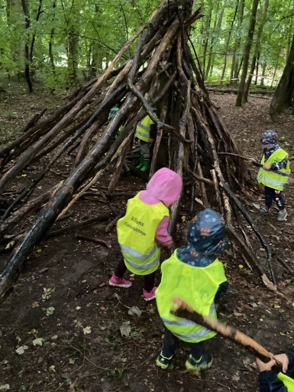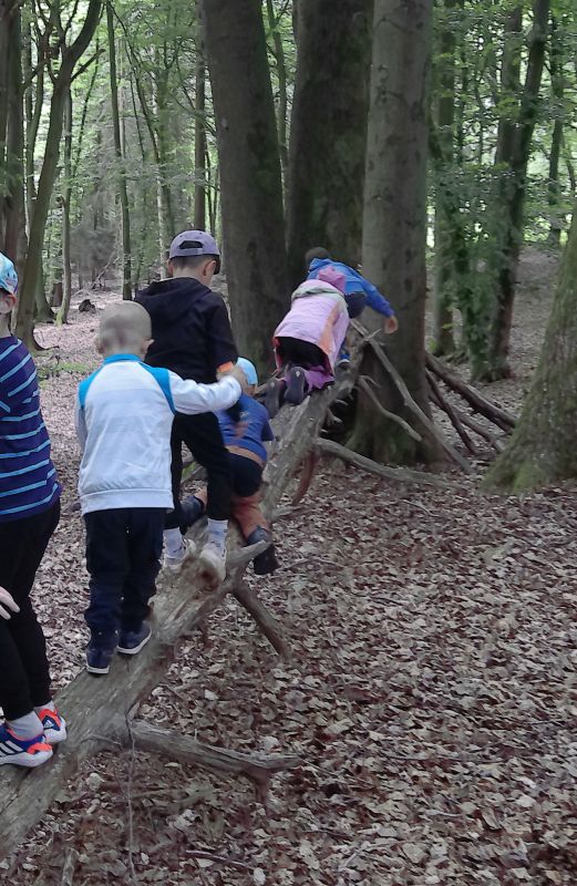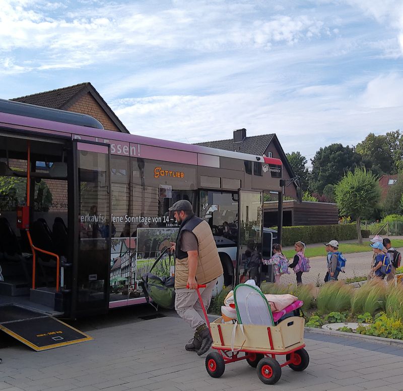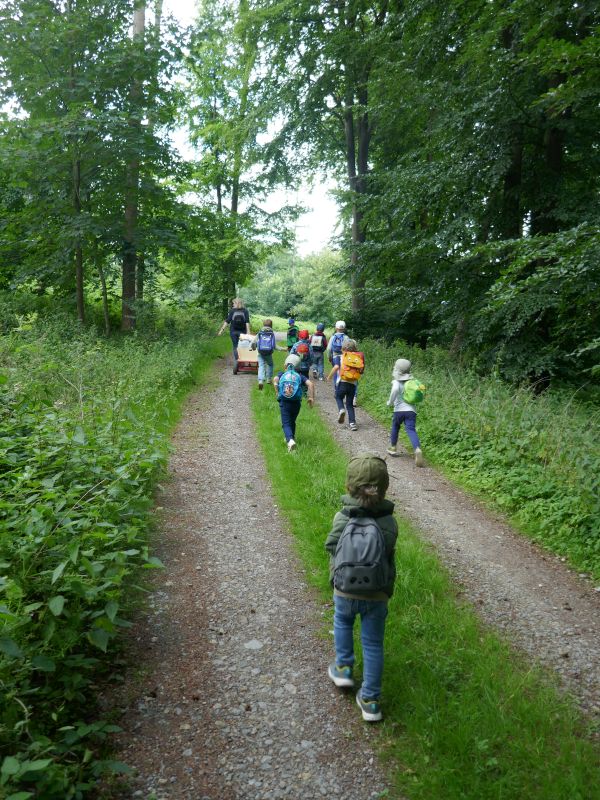 Besondere Highlights sind unsere Waldtage! Hier finden die Kinder ganz neue Spiel- und Kooperationsformen, sammeln viele Naturerfahrungen und genießen den Freiraum. Für den Weg zum Wald nutzen wir den Bus. Auch das ist für viele Kinder eine nicht alltägliche Erfahrung. Die Bingo-Umweltstiftung unterstützt uns mit Fördergeldern. Dadurch konnten wir einen Bollerwagen, Lupengläser, Trockentoilette, uvm. anschaffen und vor allem den Bus für den Transfer in die Eielstädter Schlucht und das Wittlager Rott finanzieren.